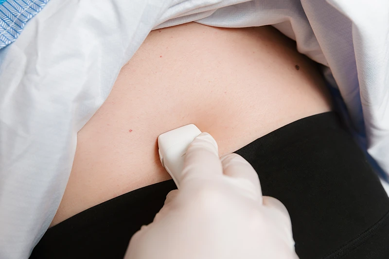 L’examen dure généralement environ 30 minutes. Vous êtes allongé·e sur le dos et/ou sur le côté. Un gel est appliqué sur la poitrine ; une sonde est déplacée à différents endroits pour capter des images. L’échographie n’utilise pas de rayons X. L’examen est non douloureux.
